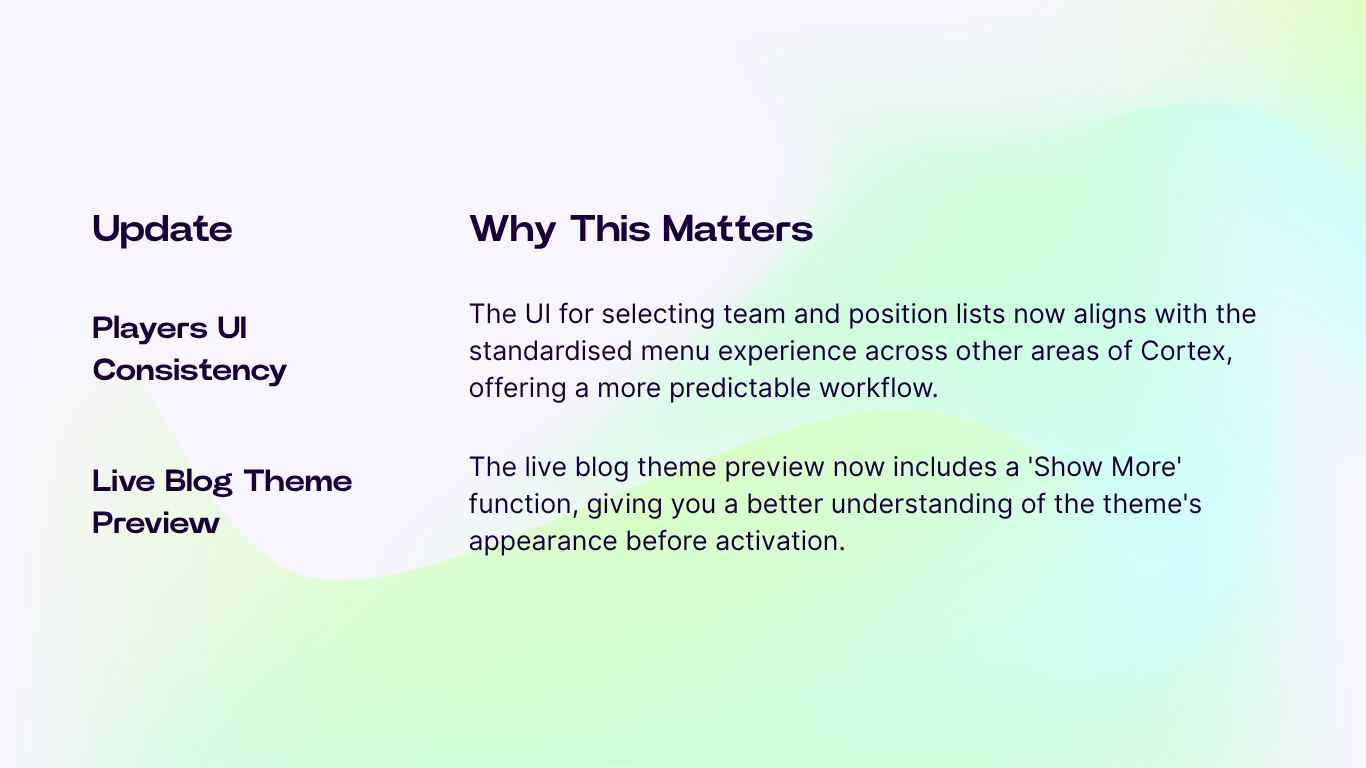 At Cortex, we're constantly working to enhance the platform's power, efficiency, and usability for our customers. This month's updates focus heavily on bulk operations, simplified workflows, and improved consistency across key commercial and content management areas.